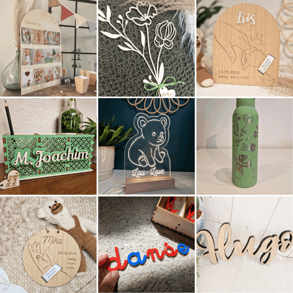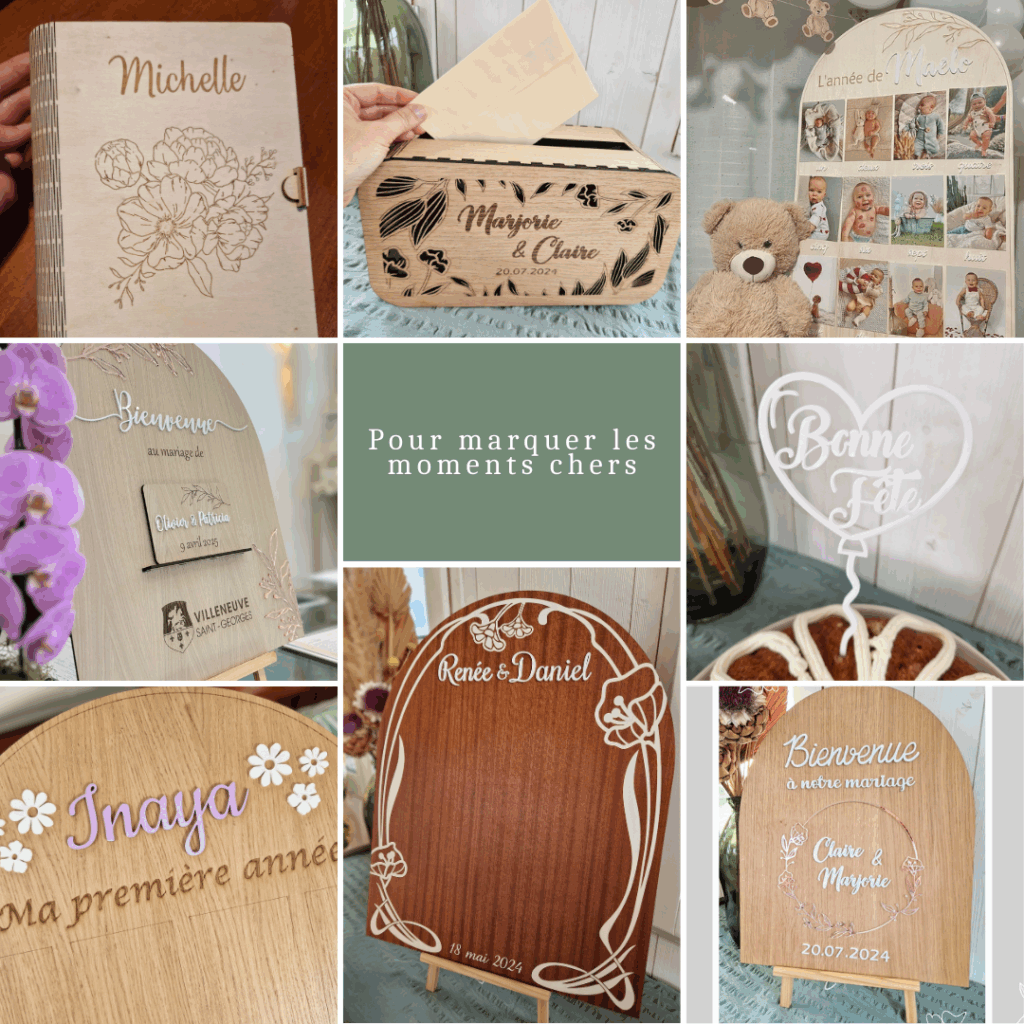 Des objets en bois et acrylique personnalisés pour :