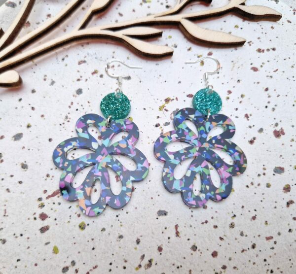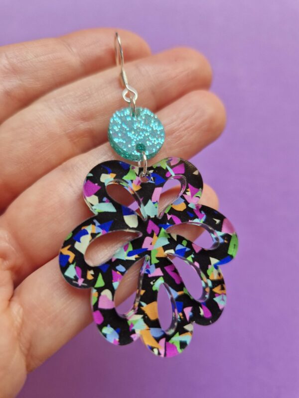 Boucles d’oreilles – Floral (terrazzo noir)