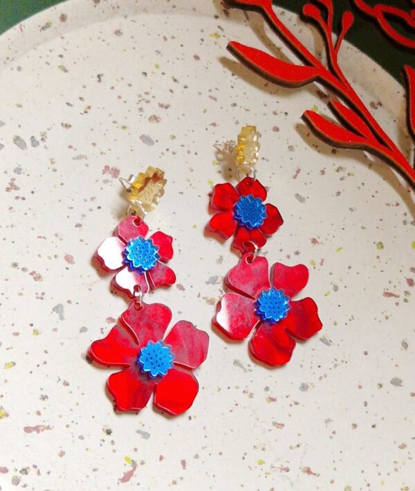 Boucles d’oreilles – Flower power (rouge et bleu)