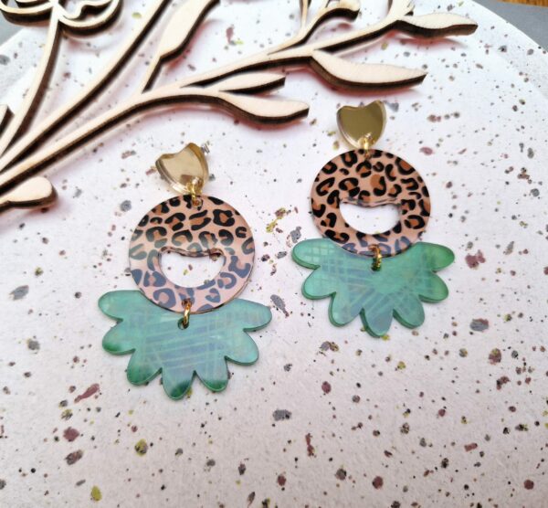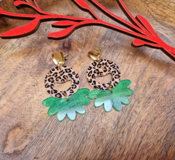 Boucles d’oreilles – Round and leaf (vert et leopart)