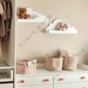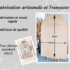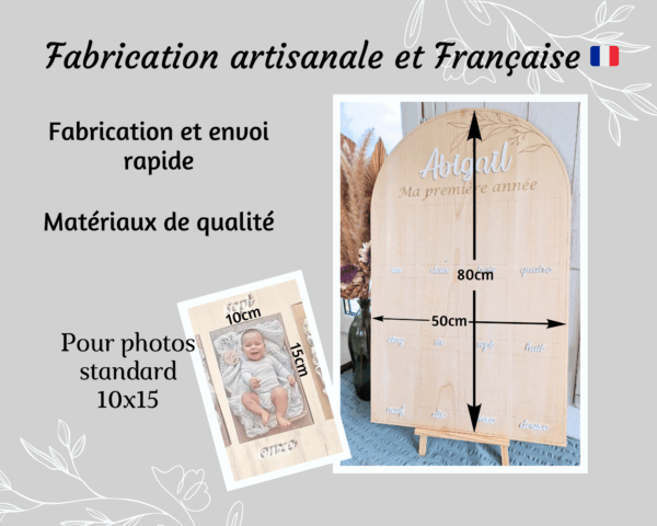 Grand panneau en bois en forme d’arche pour afficher des photos au format standard (10x15cm) des 12 premiers mois d’un bébé.