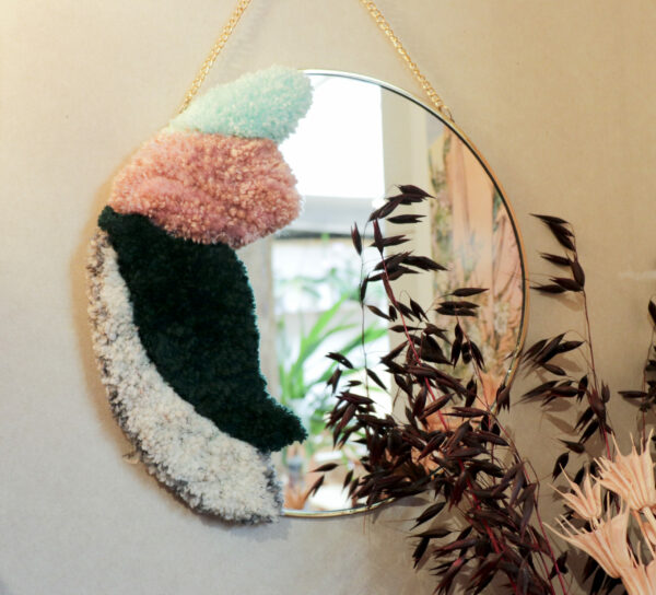 Mirror with hand tufted rug