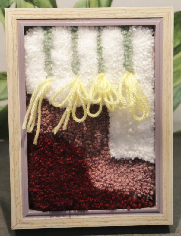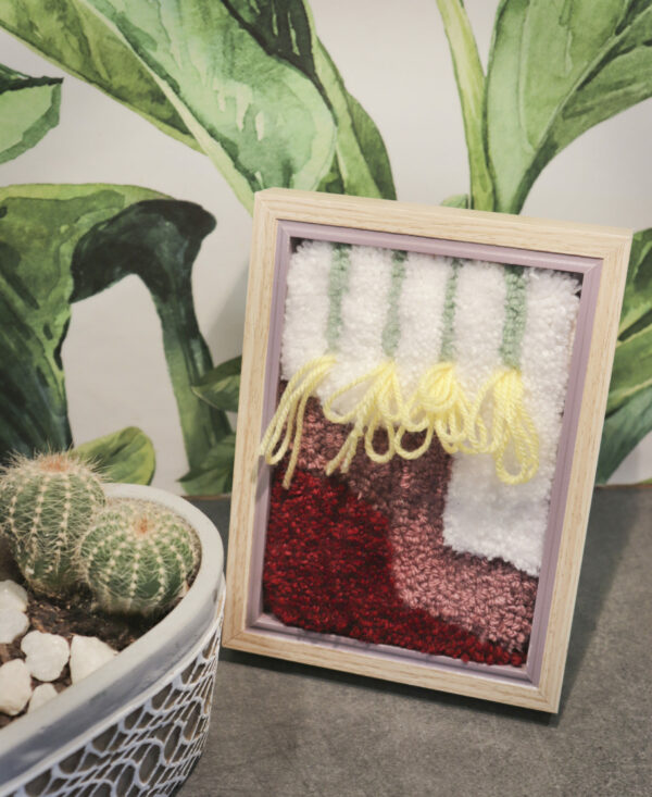 Wooden picture frame with hand tufted mini rug