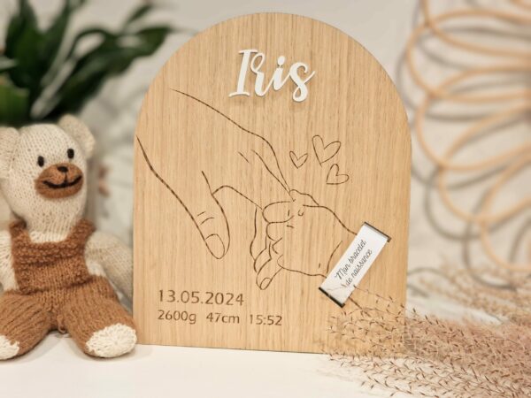 Porte bracelet de naissance personnalisé – plaque en bois gravé pour bracelet d’hôpital