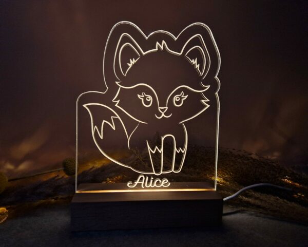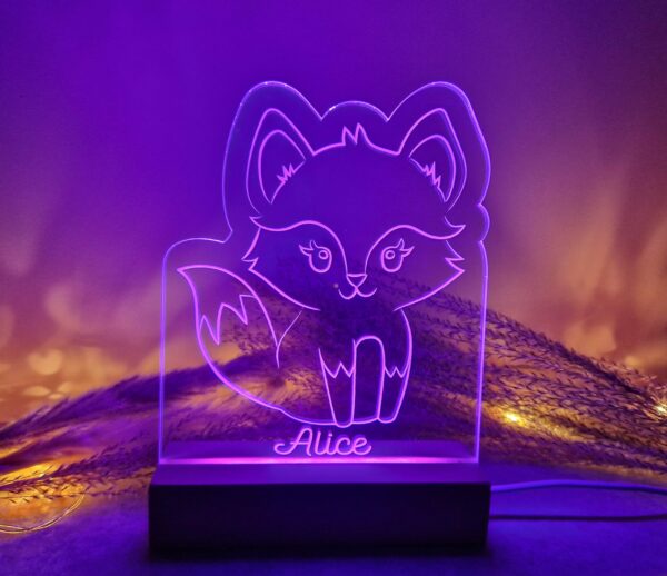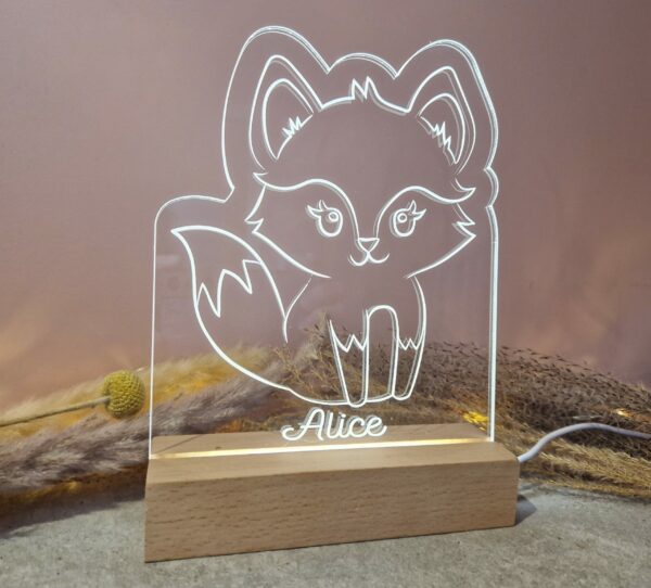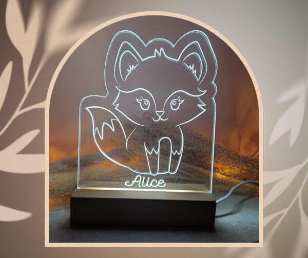 Veilleuse/lampe de table renard, personnalisable avec un prénom ou une courte phrase.