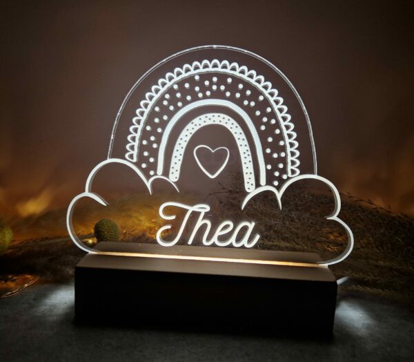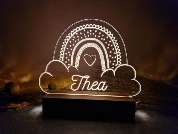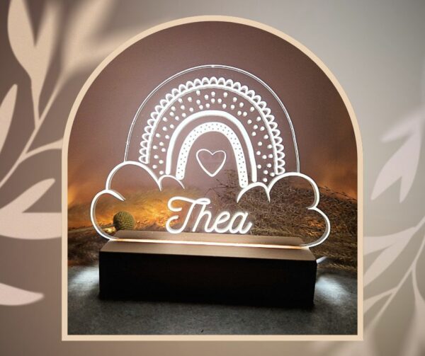 Veilleuse/lampe de table arc en ciel, personnalisable avec un prénom ou une courte phrase.