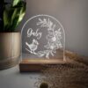 Veilleuse/lampe de table oiseau et couronne, personnalisable avec un prénom ou une courte phrase.